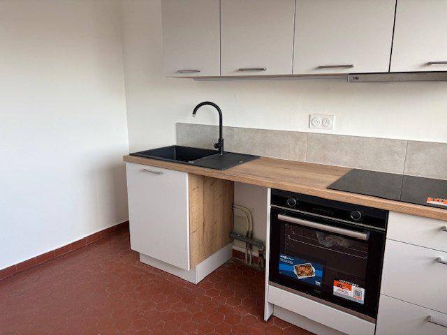 Appartement de type F3 Bis, au 5e étage avec ascenseur, refait à neuf, se composant d’un hall d’entrée avec un placard, un double séjour donnant sur un balcon, une cuisine équipée de meubles hauts et bas , une plaque vitrocéramique, une hotte et un four, deux chambres dont une avec un placard, une salle de bain, un wc et de nombreux rangements.