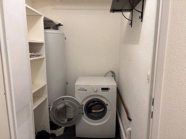L’appartement s’organise autour d’un séjour avec coin cuisine donnant sur une seconde terrasse, une chambre avec des grands placards coulissants, une belle salle d’eau, équipée d’une douche à l’italienne, une buanderie offrant un espace dédié au linge et au rangement et un wc.