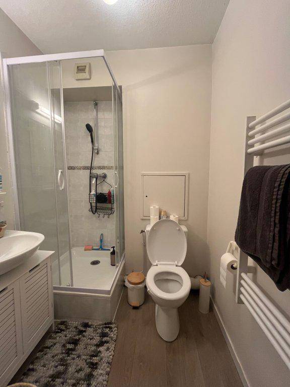 Ce studio meublé, en parfait état, de 19.48m² comprend une entrée avec rangement, pièce principale bien aménagée (canapé lit, table basse, bureau), coin cuisine équipée (frigo, plaques, vaisselles..), une salle de douche avec WC et sèche serviette.