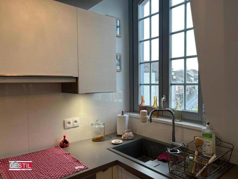 Idéalement situé, Place du Grand Martroy, proche de toutes commodités et à 10 minutes à pied de la gare SNCF de Pontoise, très bel appartement en duplex, entièrement meublé, vous offrant une entrée, un séjour avec cuisine ouverte aménagée et équipée (réfrigérateur/congélateur + plaque induction + hotte + micro-ondes + four + lave-vaisselle), une salle d’eau, WC séparés avec rangements et machine à laver et à l’étage une grande chambre avec un grand placard dressing. Chauffage individuel électrique.