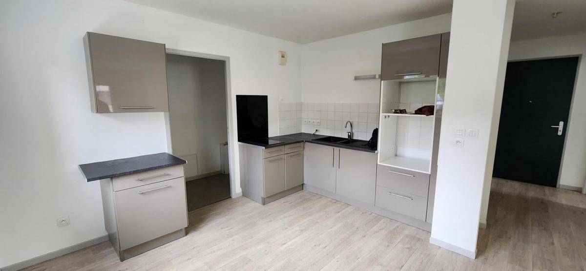 Entrée avec placard, séjour, cuisine semi équipée, 1 chambre, cellier