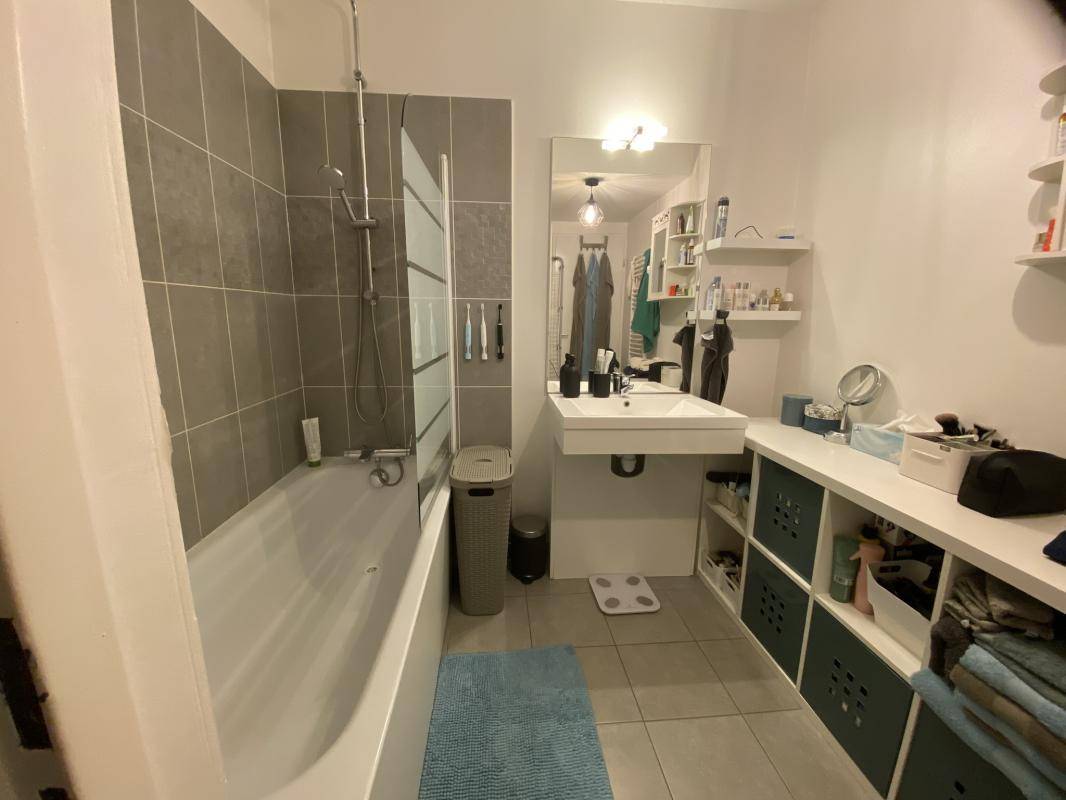PROCHE TOUTES COMMODITES, DANS RESIDENCE DE STANDING , construction 2017 F3 de 59.50m² au RDC offrant : entrée avec placard, séjour avec cuisine US équipée (hotte, plaques, four), dégagement, 2 chambres, SdB, WC. Jardin de 48m² 2 places de parking en sous-sol.